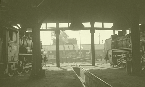 右) 平の扇形庫。左は入換えと磐越東線区間列車