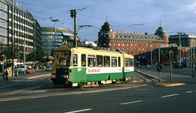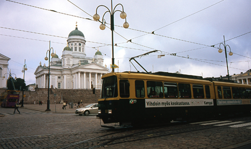 ヘルシンキはちょっと曇天。さっそく日本人の大好きな「お買いものタイム」だ。こちとら、ムーミンのイラスト入りシャツだの何だのには興味がないので、その時間をフルに使わせてもらう。ヘルシンキ大聖堂をバックにしたカットを皮切りに、市電を撮りながら、ちょっと離れた中央駅まで遠征。