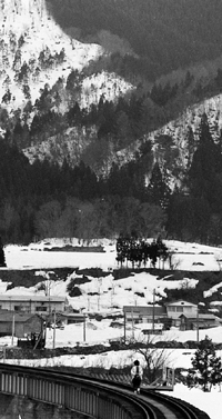 阿仁前田を出ると、線路はこの線としては長い右カーブの鉄橋で小又川を渡る。前田の集落の裏山に上ると、その光景を俯瞰することができる。また、上流側でカメラを構えていると、いい近道とばかり、地元の小母さんがけっこう長いこの橋をすたすたと渡っていくのを見かけた。鉄橋を渡るのがちょっと苦手な私は、道路の橋も近くに架かっているというのに、なんと大胆な、と、ちょっと呆れてしまったことを覚えている。