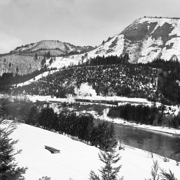 次の前田南までは1.9㌔、小渕までが2㌔と、このあたりは駅間が短い。前田南を過ぎると大阿仁川の谷が狭くなってくる。阿仁合の手前までは対岸に道路が走っているので、川向うから川や山を入れての撮影に便利である。阿仁の山々はそんなに高くはないのだが、なかにはきりりと屹立している姿形のいい山もあって、なかなかにフォトジェニックだ。