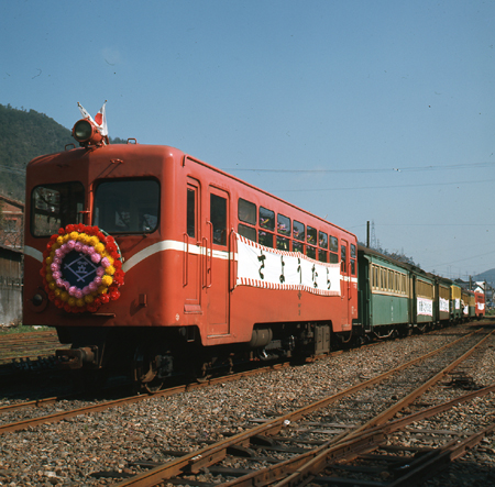 4月1日は、前日までとはうってかわっての好天気。くじ場駅まで歩いていくと、  前日のさよなら列車の編成のまわりで、近所の子供たちが歓声をあげて遊びまわっていた。