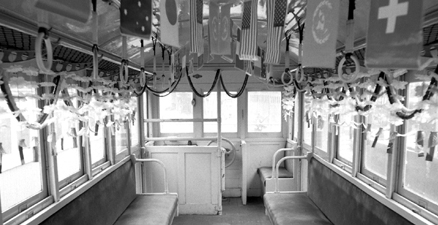 客車の車内。前日の飾り付け