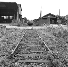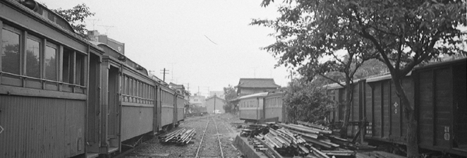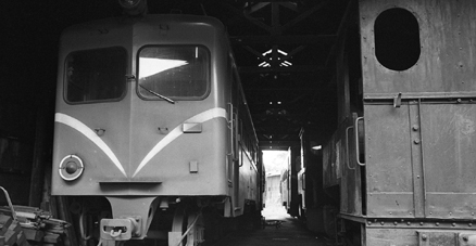 着いてみると、予想通り車庫の構内には、はやくも雑草がはびこり、駅と車庫を除くとすでにレールの撤去作業も終わっていた。 しかし頒布会には多くの人が集まり、気動車のエンジンがかけられると、車庫からコッペルの1号機を本線へと引き出した。 さよなら運転のときと同じようにダミイの白煙や蒸気をあげてデモンストレーション。見れば、あの高橋三郎氏がお孫さんを抱いて、 にこにこ笑っている。