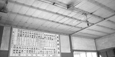 人影の無い待合室。天井でツバ
