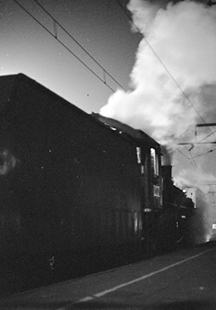 なにせ、夕方から夜にかけて、16時02分発の福知山行き 841レにはじまり、16時59分1827レ、17時21分 843レ、17時41分1829レ、 18時13分 845レ、18時45分1831レと、頻繁に客車列車が出発していった。そのすべてが蒸機ではなかったものの、DD54だってなかなかに魅力的。 そのあとも、21時08分1833レ、そして22時03分にはDL牽引の寝台車つき下関行長距離鈍行 829レも発車していったが、「音戸」の座席確保のために 遠く離れた7番ホームで並ぶ必要があったため、残念ながらこの列車はカメラに収めてはいない。