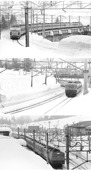 冬の夜、そんなふうに作品を読んでいると、ふと旅に出たくなる。 その当時は上越線の臨時スキー夜行急行が何本も出ていたから(しかもそのうち1本は客レだった)、夜明け前には越後湯沢に着ける。 湯沢から岩原スキー場前、越後中里にかけては大カーブあり、橋あり、で、見どころも多い。 真剣に撮影するなら深夜に越後湯沢に停車あるいは通過する客車急行を狙うべきだろうが、文学散歩的な(?)撮影行にはちょっとそぐわない。
